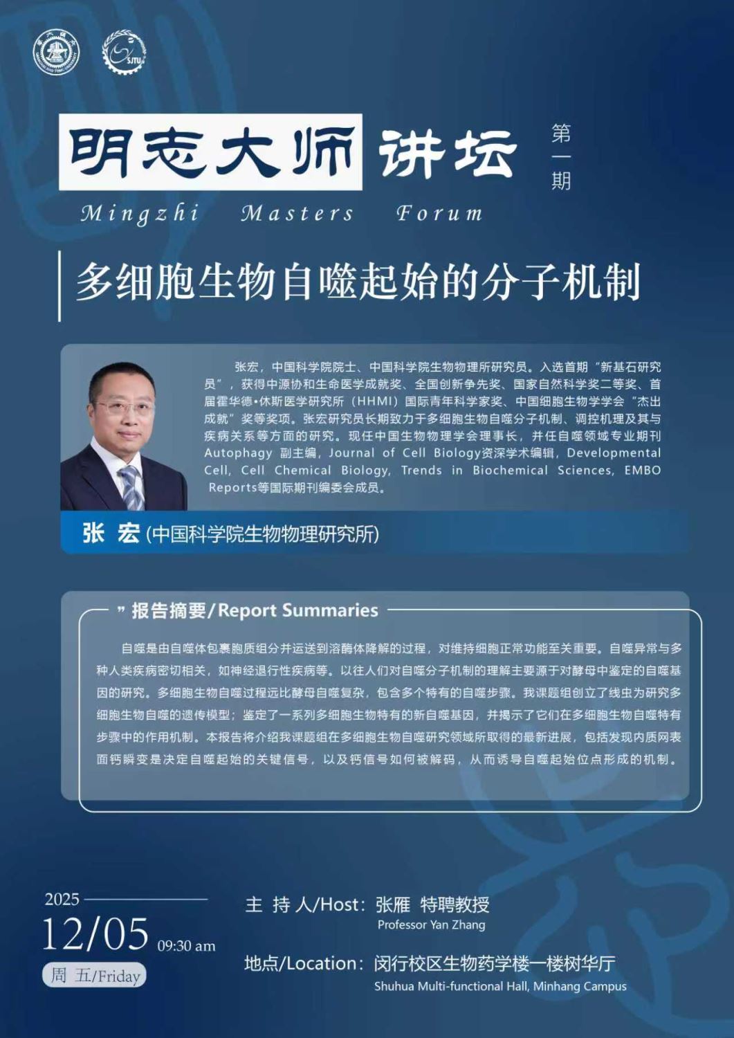 自噬是由自噬体包裹胞质组分并运送到溶酶体降解的过程,对维持细胞正常功能至关重要。自噬异常与多种人类疾病密切相关,如神经退行性疾病等。以往人们对自噬分子机制的理解主要源于对酵母中鉴定的自噬基因的研究。多细胞生物自噬过程远比酵母自噬复杂,包含多个特有的自噬步骤。我课题组创立了线虫为研究多细胞生物自噬的遗传模型;鉴定了一系列多细胞生物特有的新自噬基因,并揭示了它们在多细胞生物自噬特有步骤中的作用机制。本报告将介绍我课题组在多细胞生物自噬研究领域所取得的最新进展,包括发现内质网表面钙瞬变是决定自噬起始的关键信号,以及钙信号如何被解码,从而诱导自噬起始位点形成的机制。